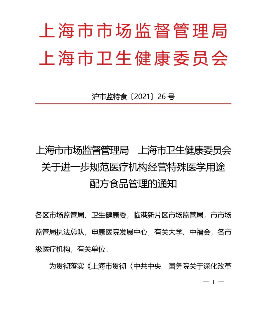 上海市發(fā)布特醫(yī)食品經(jīng)營(yíng)管理規(guī)范